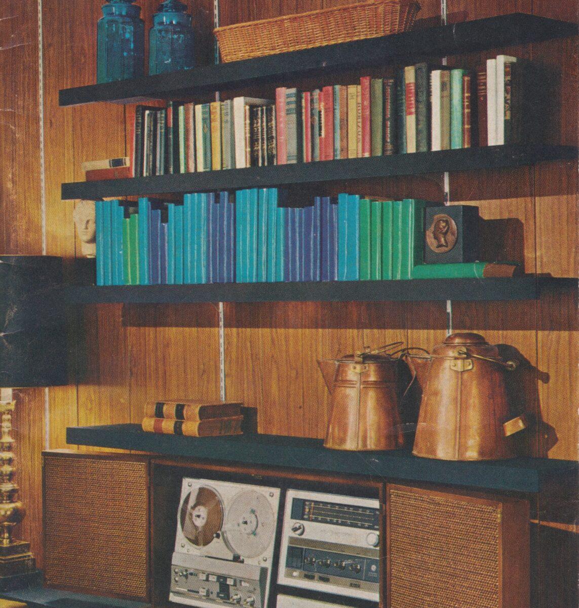 One of my little hobbies when I am out collecting at a bookstore or antique mall is picking up vintage books on interior decorating and design. I’ve long been fascinated by how people of past generations organized space, which often speaks to what items, activities, and routines were valued during a certain period in time. When I was writing the entry about Discogs’ Dis/Connect Day back in September, I went on the hunt for an image or two to include with the post as I wrapped up my writing. In my collection of these interior decorating books is a brief Better Homes and Gardens “A Guide to Bookshelves” pamphlet from 1971, which contained an entire section on incorporating turntables and sound systems into your reading nooks. This pamphlet emphasized how normal it was during this time to allow recorded sound (and books as well) to be a focal point of your living spaces, that music was just as essential to your physical space as every other part of a room. Music had a presence.