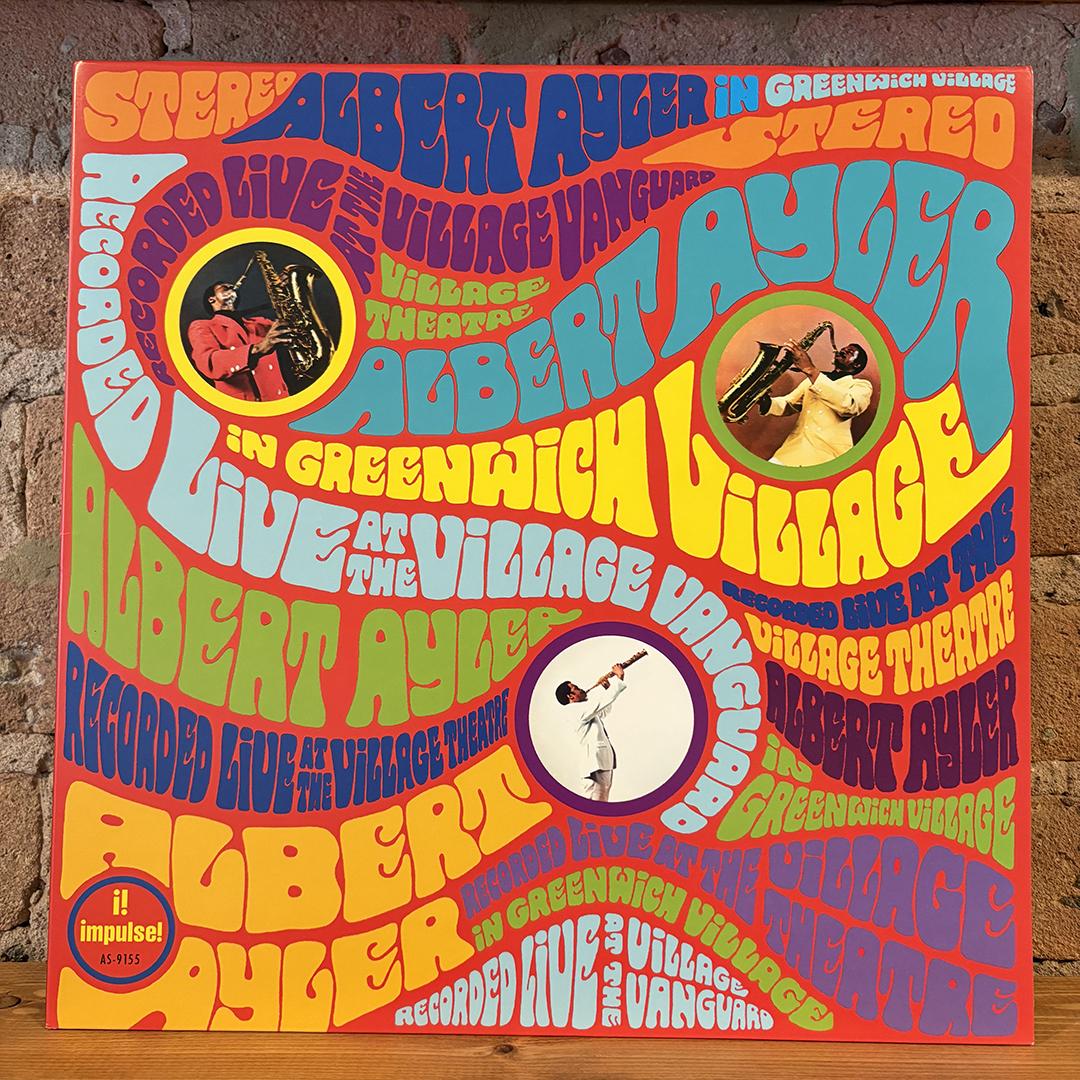 “In the mid-’60s, Albert Ayler found himself at the center of major transformations within jazz. On his albums for ESP-Disk’, his delivery was radically aggressive and his tone blistering – aiming for something beyond the New Thing. His music would be further energized when (at the behest of John Coltrane) Bob Thiele signed him to Impulse! As Ayler told The Plain Dealer at the time, “It’s not about notes anymore. It’s a sound – a feeling. The approach we’re taking will discontinue the use of the word ‘jazz.'” In Greenwich Village, Ayler’s first LP on Impulse!, perfectly captures the Cleveland-born saxophonist’s radiant intensity. Sourced from a pair of live engagements – February ’67 at the Village Theatre on New York’s Lower East Side and December ’66 at the Village Vanguard – these recordings show an improved clarity in production and performance. Both sets feature two basses (including Alan Silva and Henry Grimes) which allowed the ensemble to go in different harmonic directions while maintaining an organic unity. Of particular interest are “For John Coltrane,” a tribute to Ayler’s mentor who would pass later that year, and “Truth Is Marching In” where trumpeter Donald Ayler joins his brother to celebrate and ultimately deconstruct several jazz traditions to stunning effect.” – notes from Superior Viaduct reissue