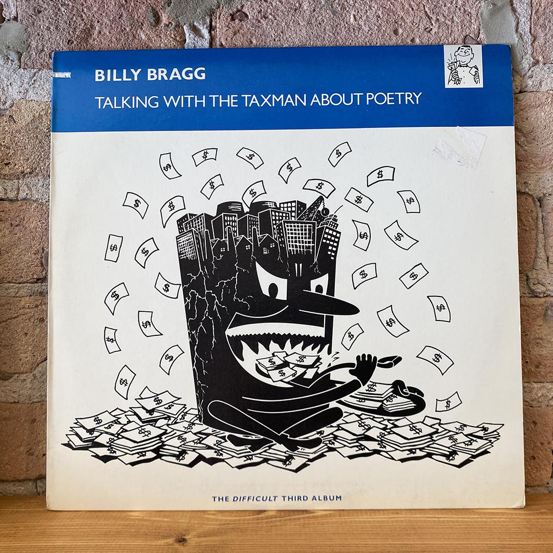 “The cover to Billy Bragg’s Talking with the Taxman About Poetry features the subtitle “the difficult third album,” and while it’s obviously meant as a joke, there’s also a certain truth to the statement — after two EPs and a full album that only rarely featured anything other than Bragg’s voice and electric guitar, Talking with the Taxman found him and producers John Porter and Kenny Jones trying to add a bit of polish to Bragg’s stark sound without losing either the charm of his performances or the power of his political statements. While nearly all the tracks on Talking with the Taxman feature Bragg alongside other musicians (among them Johnny Marr and Kirsty MacColl), the arrangements are purposefully spare, and ultimately they sweeten the songs without getting in the way of Bragg’s homey melodies or passionate lyrics. However, as a songwriter, Billy’s heart was stronger than his head on this album; while Talking with the Taxman features several of his best love songs (such as “The Marriage,” “Greetings to the New Brunette,” and “Wishing the Days Away”) and some superb character studies (“Levi Stubbs’ Tears” and “The Passion”), the political numbers are unexpectedly strident and obvious, especially the clumsy “Ideology” and “Help Save the Youth of America.” Talking with the Taxman About Poetry proved that Bragg could take his music in a new direction and still hold on to the qualities that made his songs so special; too bad his political instincts were not as keen as his musical ones at the time.” – allmusic.com