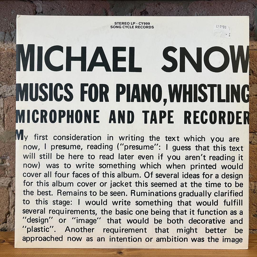 Michael Snow – Musics For Piano, Whistling, Microphone And Tape Recorder