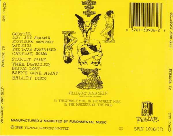“Beginning in 1982, the conceptual audiovisual troupe labeled Psychic TV set out on a multimedia journey filled with subversion, liberation and rebellion. Materialized between Throbbing Gristle co-founder Genesis P-Orridge and Alternative TV songwriter Alex Fergusson, Psychic TV started pulling in familiar faces with the likes of Peter “Sleazy” Christopherson, Paula P-Orridge, Jhonn Balance, David Tibet, John Gosling and countless others. While the members’ previous works took root in the counterculture zeitgeist of late ‘70s UK punk and conceptual art, it was no longer a question of how to rebel against authority, but rather how to carefully subvert it through collective infiltration. Parallel to Psychic TV, its members formed the anti-cult faction The Temple of Psychick Youth, further propagating the Psychic TV message and vision. While the ensuing years saw Psychic TV’s major label infection and record breaking live album release binge, it wasn’t until 1988 that the band started to ready itself for a chart-friendly pop endeavor in the form of “Allegory & Self”. This would be the band’s most notable and successful endeavor but tragically, it would be the final songwriting collaboration between P-Orridge and Fergusson. “Allegory and Self” was a perfect storm of catchy pop melody along with subversive counter-culture reference and occult leanings, packaged in a perfect bundle of underground hits. The record’s opening track “Godstar”, a song gushing obsessive praise upon the fallen Rolling Stone’s member Brian Jones, would give the album it’s most notable identity. Godstar’s melodic hooks and haunting, Phil Spector-era lyrical chant gives into to all the hallmarks of a chart-topping hit. “Just Like Arcadia” and “Being Lost” follows in similar footsteps, charging along with a somewhat whimsical Beach Boys-esque pop quality. The album also contained a sneak-peak into what direction Psychic TV was heading into going forward, apparent in the acid house number “She Was Surprised”. Tracks like “Starlit Mire” and “Thee Dweller” reflect more of what the Psychic TV live experience was akin to in the ’80s, aggressive and hypnotic. All together, “Allegory and Self” would stand alone as the band’s signature apex from the original ’80s line-up.” – notes from Sacred Bones reissue.