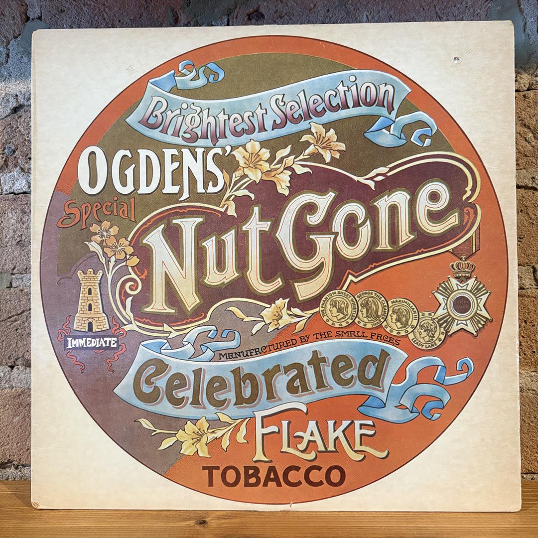 “There was no shortage of good psychedelic albums emerging from England in 1967-1968, but Ogdens’ Nut Gone Flake is special even within their ranks. The Small Faces had already shown a surprising adaptability to psychedelia with the single “Itchycoo Park” and much of their other 1967 output, but Ogdens’ Nut Gone Flake pretty much ripped the envelope. British bands had an unusual approach to psychedelia from the get-go, often preferring to assume different musical “personae” on their albums, either feigning actual “roles” in the context of a variety show (as on the Beatles’ Sgt. Pepper’s Lonely Hearts Club Band album), or simply as storytellers in the manner of the Pretty Things on S.F. Sorrow, or actor/performers as on the Who’s Tommy. The Small Faces tried a little bit of all of these approaches on Ogdens’ Nut Gone Flake, but they never softened their sound. Side one’s material, in particular, would not have been out of place on any other Small Faces release — “Afterglow (Of Your Love)” and “Rene” both have a pounding beat from Kenny Jones, and Ian McLagan’s surging organ drives the former while his economical piano accompaniment embellishes the latter; and Steve Marriott’s crunching guitar highlights “Song of a Baker.” Marriott singing has him assuming two distinct “roles,” neither unfamiliar — the Cockney upstart on “Rene” and “Lazy Sunday,” and the diminutive soul shouter on “Afterglow (Of Your Love)” and “Song of a Baker.” Some of side two’s production is more elaborate, with overdubbed harps and light orchestration here and there, and an array of more ambitious songs, all linked by a narration by comic dialect expert Stanley Unwin, about a character called “Happiness Stan.” The core of the sound, however, is found in the pounding “Rollin’ Over,” which became a highlight of the group’s stage act during its final days — the song seems lean and mean with a mix in which Ronnie Lane’s bass is louder than the overdubbed horns. Even “Mad John,” which derives from folk influences, has a refreshingly muscular sound on its acoustic instruments. Overall, this was the ballsiest-sounding piece of full-length psychedelia to come out of England, and it rode the number one spot on the U.K. charts for six weeks in 1968, though not without some controversy surrounding advertisements by Immediate Records that parodied the Lord’s Prayer. Still, Ogdens’ was the group’s crowning achievement — it had even been Marriott’s hope to do a stage presentation of Ogdens’ Nut Gone Flake, though a television special might’ve been more in order.” – allmusic.com